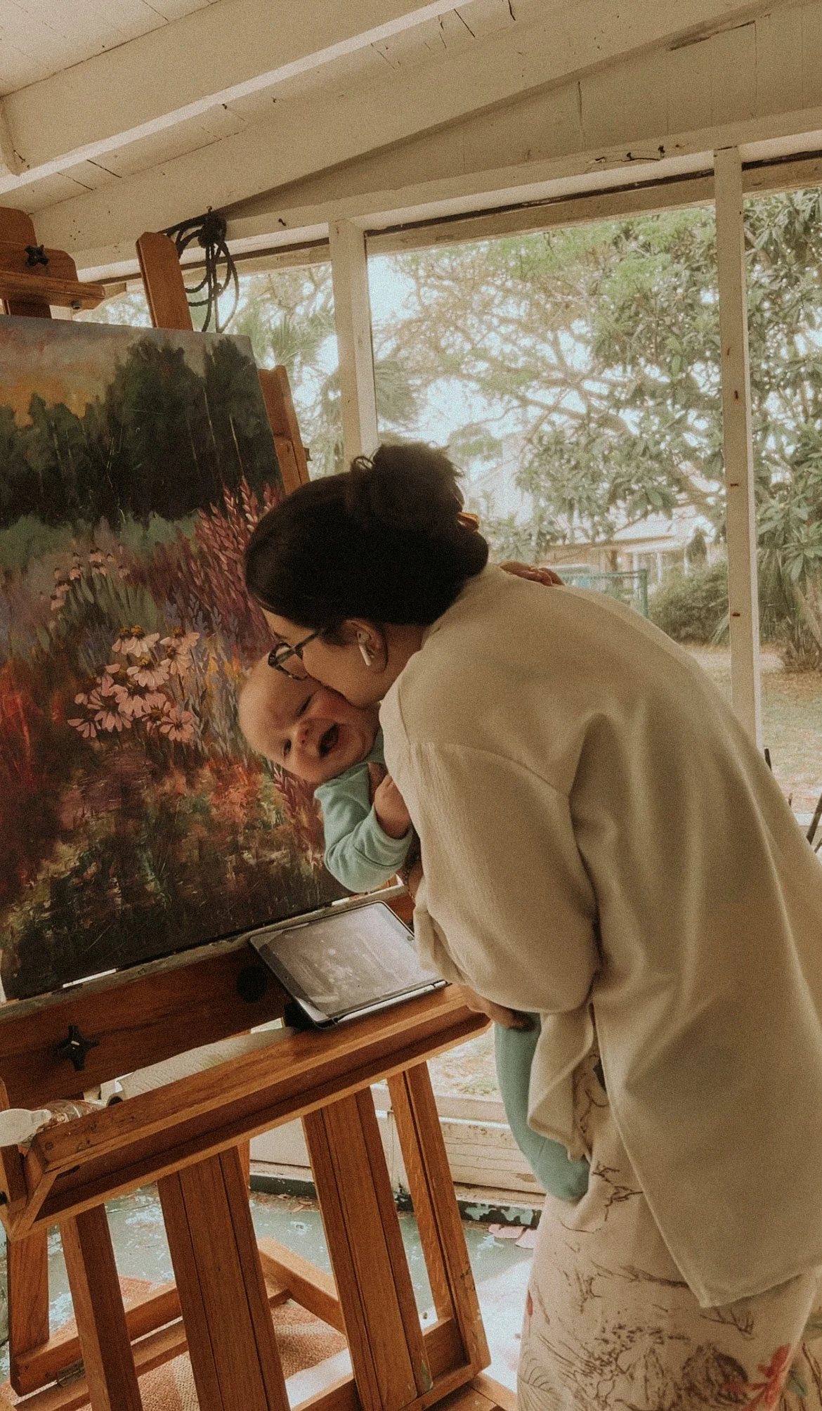 While I have always identified as an artist, I felt an artistic renaissance after the birth of my first child. Navigating the complexities of new motherhood, I struggled to learn my new identity in the world. At a time when life felt both metaphorically chaotic with the shift in my identity in this world, and literally chaotic as I managed a job, home, and a new baby, my art became my grounding force. Painting brought me back to my truth, offering a sense of stability and peace amidst the turbulence.
