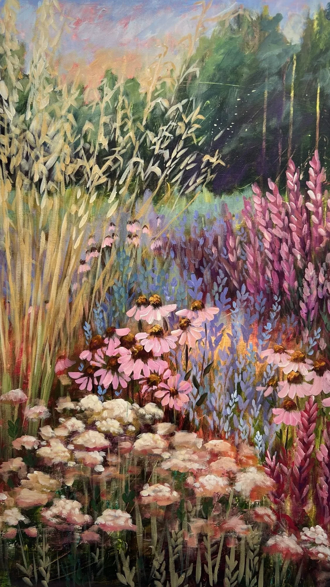 These serene flower paintings invite peace and reflection, reminding us of life’s natural cycles. Each piece invites the viewers to pause and appreciate the beauty of nature and its lessons in growth, renewal, and the reminder that every once in awhile you need to slow down and smell the roses.
